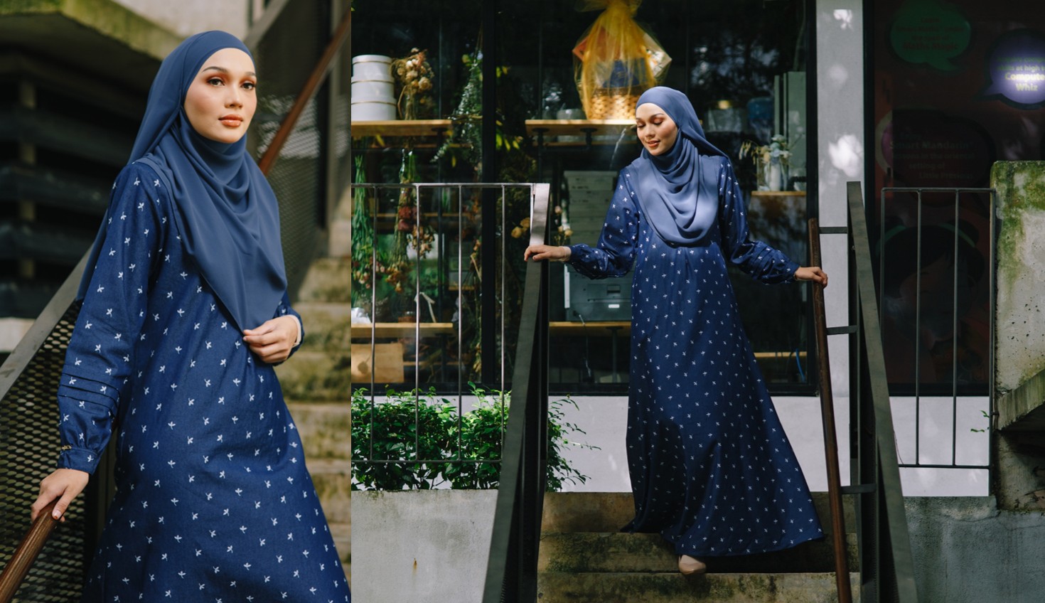 Ayla Suit Cotton — ensemble for those who love the elegance of pants with a long blouse. Designed with a V-neck and signature Estifa button, cuffed sleeves, and double pleats at the back yoke for flowy comfort. The loose-fit blouse pairs with pants featuring pockets and a stretchable waist for effortless wear. This suit comes with varies colour such as off white (full lining), black, medium brown, grey and dark blue.