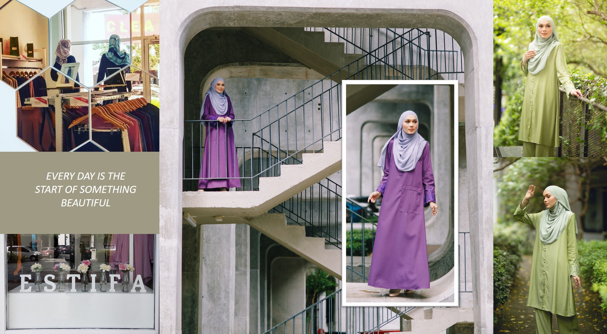 THE GROWTH From a small atelier on the first floor of a shop office in Bandar Putra Permai, ESTIFA has evolved into a trusted name in modest fashion, reaching women across Malaysia, Singapore, Brunei and the Philippines. Each collection is designed to complement the modern Muslim woman’s lifestyle — modest yet contemporary, refined yet versatile.